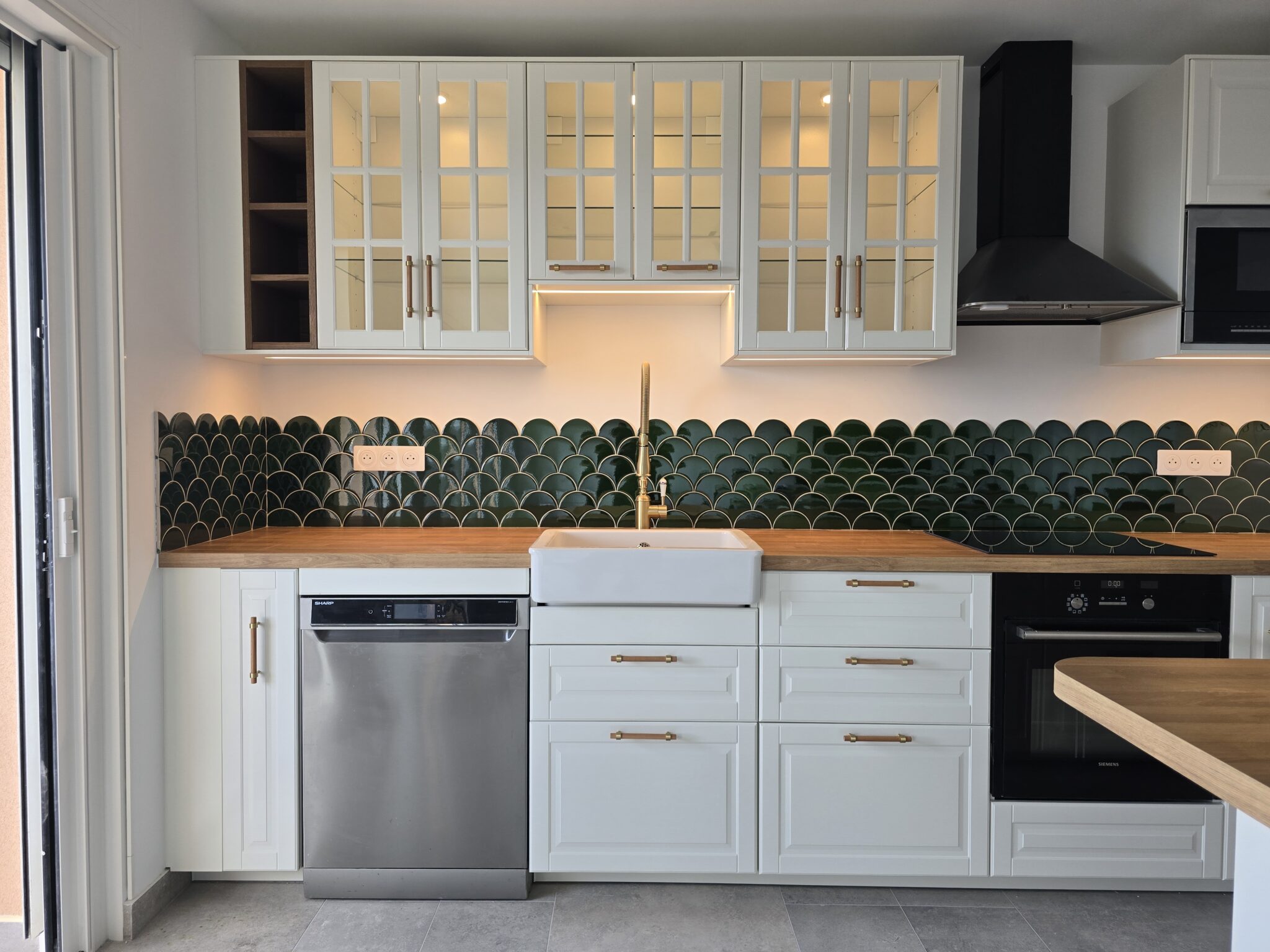L'électroménager, choisi avec goût par notre client, a été intégré de manière fluide et fonctionnelle, optimisant l'ergonomie de la cuisine. Les finitions, telles que la pose des poignées et des crédences, ont apporté la touche finale, révélant une cuisine à la fois pratique et esthétiquement plaisante.